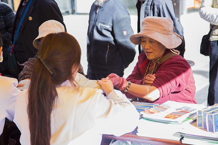 自14日早上九點(diǎn)活動(dòng)開(kāi)始,前來(lái)阜康醫(yī)藥義診宣傳點(diǎn)測(cè)血壓、測(cè)血糖、咨詢身體健康問(wèn)題及安全用藥知識(shí)的人便絡(luò)繹不絕,整整一上午,阜康醫(yī)藥16名醫(yī)護(hù)人員都在一刻不停的忙前忙后,但能夠?yàn)閺V大藏族同胞及社會(huì)群眾服務(wù),大家都絲毫不覺(jué)得辛苦,反而發(fā)自內(nèi)心的感到充實(shí)與喜悅。據(jù)活動(dòng)結(jié)束后統(tǒng)計(jì),本次活動(dòng)西藏阜康醫(yī)藥發(fā)展有限公司免費(fèi)發(fā)放各類相關(guān)資料千余份,免費(fèi)發(fā)放維生素、鈣片、風(fēng)濕及心腦類等藥品一萬(wàn)兩千余元,免費(fèi)測(cè)血壓、血糖、看病等也多達(dá)數(shù)百人次。