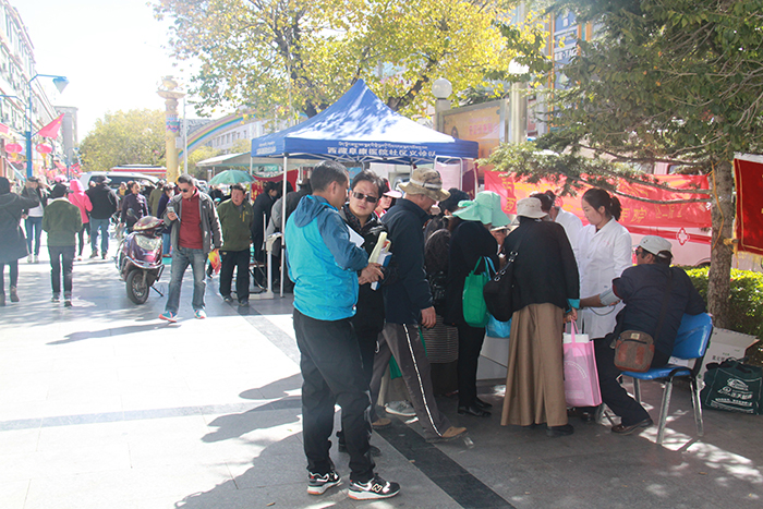 10月17日上午, 2016年“扶貧日”大型義診活動(dòng)在拉薩市宇拓路隆重舉行。按照區(qū)衛(wèi)計(jì)委通知,西藏阜康醫(yī)院抽調(diào)4名專家組成“精準(zhǔn)扶貧,健康扶貧小分隊(duì)”在拉薩市宇拓路設(shè)點(diǎn)開展以送醫(yī)送藥、送檢查、免費(fèi)義診、健康指導(dǎo)和咨詢服務(wù)等為一體的大型義診服務(wù)活動(dòng)。