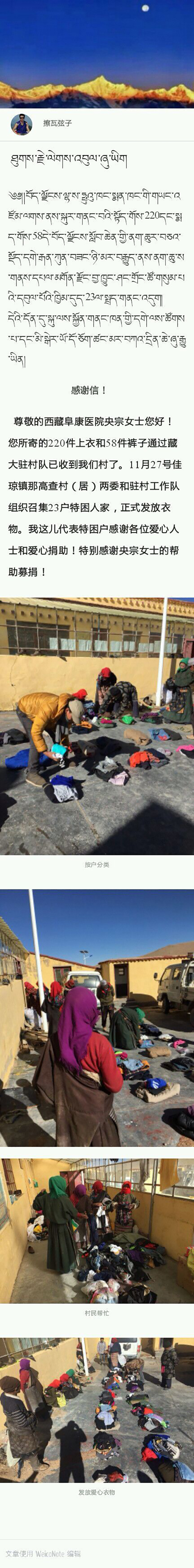 我院央宗女士連續(xù)兩年多為偏遠(yuǎn)地區(qū)貧困家庭捐贈(zèng)衣物