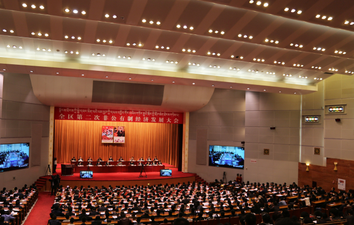 自治區(qū)黨委常委、黨委統(tǒng)戰(zhàn)部部長旦科宣讀《全國工商業(yè)聯(lián)合會關(guān)于西藏自治區(qū)召開第二次非公經(jīng)濟(jì)發(fā)展大會的賀信》;自治區(qū)黨委副書記、人大常委會主任洛桑江村宣讀《中共西藏自治區(qū)委員會、西藏自治區(qū)人民政府關(guān)于表彰西藏自治區(qū)非公有制經(jīng)濟(jì)先進(jìn)單位和個(gè)人的決定》,自治區(qū)領(lǐng)導(dǎo)吳英杰、洛桑江村、齊扎拉等為全區(qū)第二批優(yōu)秀中國特色社會主義建設(shè)者、2016年全區(qū)五類100強(qiáng)非公有制企業(yè)、全區(qū)扶持非公有制經(jīng)濟(jì)發(fā)展先進(jìn)地(市)和先進(jìn)縣(區(qū))獲獎(jiǎng)代表頒獎(jiǎng)。