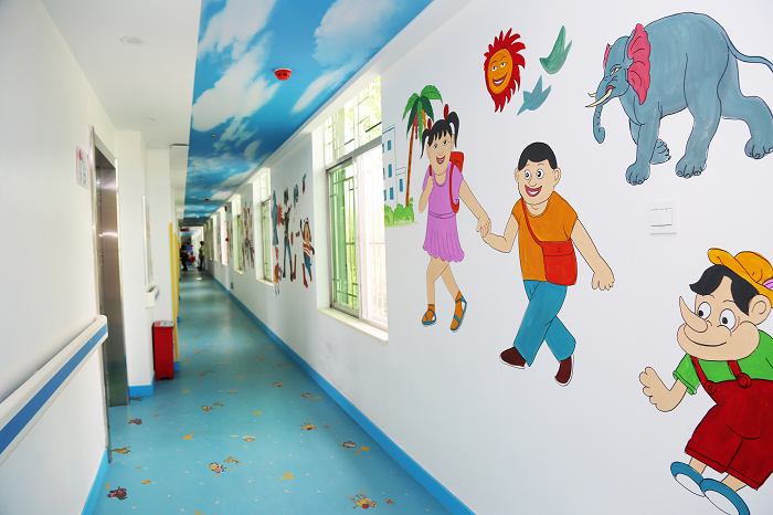 近日,隨著醫(yī)院的改造升級(jí),兒科病房一改往日單調(diào)刻板的面貌,變身童趣十足的游樂(lè)園。整個(gè)科室以?xún)和矏?ài)的鮮亮色彩作為主色調(diào),并增添了許多人性化設(shè)計(jì),將原來(lái)白色墻面豐富為彩色亮麗、充滿童趣的墻體,走廊處畫(huà)上了各類(lèi)卡通圖案,營(yíng)造了溫馨可愛(ài)的氛圍,小朋友們就診時(shí)如同置身于卡通樂(lè)園,充分體現(xiàn)了現(xiàn)代化專(zhuān)科醫(yī)院室內(nèi)設(shè)計(jì)的人文理念。
