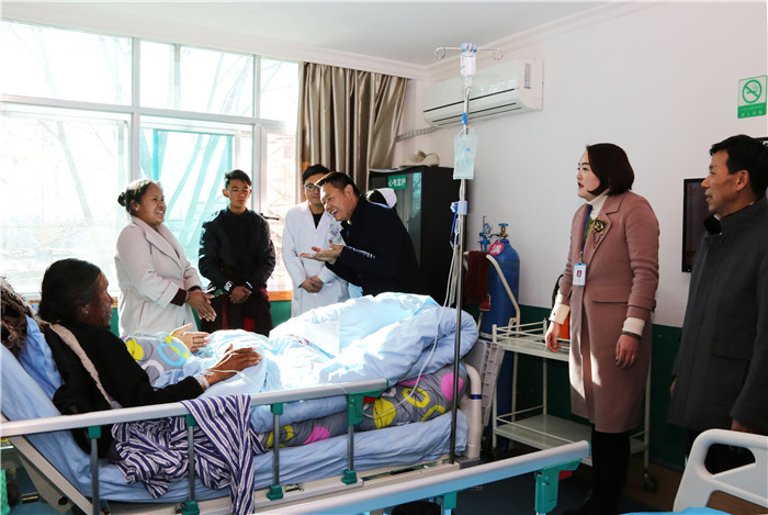 在藏歷新年和新春佳節(jié)來臨之際,2018年2月15日、16日,受公司黨委書記王斌同志委托,由公司黨委副書記、副總經(jīng)理陳彬同志,西藏阜康醫(yī)院院長阿旺建才、西藏阜康醫(yī)院院長歐珠羅布帶隊的雙節(jié)慰問小組集中慰問春節(jié)期間堅守在一線的專家、醫(yī)務工作人員、行政后勤員工及不能出院與家人團聚的患者。為他們送來了董事長的關心和問候,帶來了新年的美好祝愿和飽含暖暖情誼的慰問禮物。