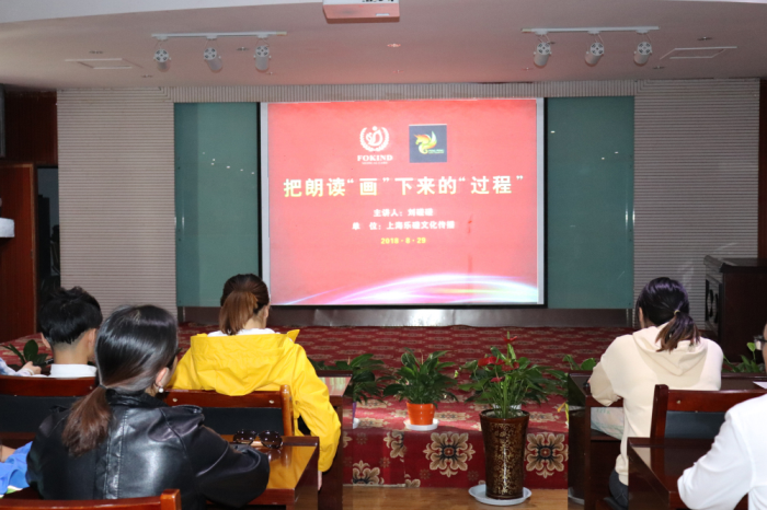 19:00,主持人宣布培訓(xùn)開始。劉碰碰老師以一句“今天天氣真好?”開始了培訓(xùn),在劉老師的提議下,以這一句話在不同情境下以不同的方式表達不同含義,大家紛紛踴躍嘗試,或是高興、或是憂傷、或是搞笑,現(xiàn)場氣氛變得輕松、愉悅,為了貼近大家的生活,劉老師特意選取了倉央嘉措的詩作為朗讀的范本,把朗讀“畫”下來,用“畫畫”的方式,將作者寫在紙上的文字,用聲音這支筆讓它立體起來,形成一個又一個豐富的“聲音的畫面”,讓聽者感同身受。