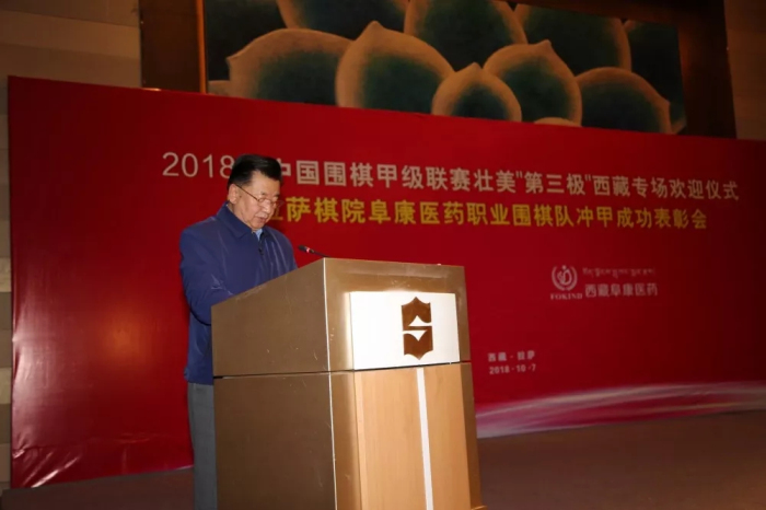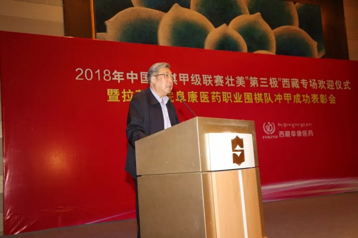 中國圍棋協(xié)會(huì)主席林建超將軍在致辭中表示,拉薩棋院西藏阜康醫(yī)藥職業(yè)圍棋隊(duì)沖甲成功是全國圍棋運(yùn)動(dòng)中的一件大事。它首先改變了當(dāng)代中國圍棋運(yùn)動(dòng)的版圖,雪域高原第一次在中國圍棋甲級(jí)聯(lián)賽中占有了一席之地;其次,這次沖甲實(shí)現(xiàn)了西藏體育發(fā)展的一次突破,使西藏在全國性的體育賽事中,擁有了第一支甲級(jí)職業(yè)隊(duì)伍;第三,本次沖甲成功,為圍棋文化和藏式棋類文化的交融促進(jìn)提供了一個(gè)很好的契機(jī),為西藏地區(qū)棋文化的發(fā)展起到了很好的推動(dòng)作用。這項(xiàng)成績(jī)來之不易,首先應(yīng)該歸功于自治區(qū)各級(jí)黨委、政府的重視,尤其是齊扎拉主席長(zhǎng)期以來對(duì)包括圍棋、藏式棋等棋類活動(dòng)的支持,有效促進(jìn)了這項(xiàng)中華民族優(yōu)秀傳統(tǒng)文化在雪域高原的普及與發(fā)展,這是與習(xí)近平總書記在十九大報(bào)告中提出的戰(zhàn)略目標(biāo)相一致的。