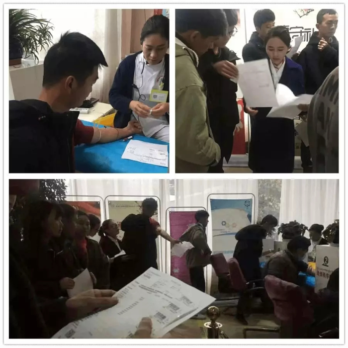 西藏阜康醫(yī)院健康體檢中心工作人員為體檢學生打印體檢指引單