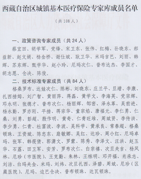 附件:西藏自治區(qū)城鎮(zhèn)基本醫(yī)療保險(xiǎn)庫專家名單