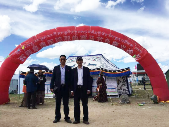 ▲黨委紀(jì)檢委員陳彬同志與嘎布院長(zhǎng)義診點(diǎn)前的合影