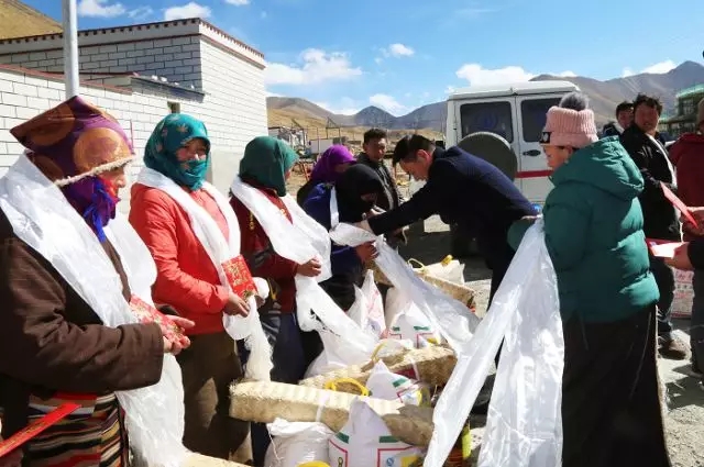 2018年2月13日,在藏歷新年即將來臨之際,為了讓大家過上一個(gè)歡樂、祥和的新年,受公司黨委書記王斌同志委托,公司黨委副書記、副總經(jīng)理陳彬、阜康醫(yī)院院長嘎布、公司副總經(jīng)理王鐵君,隨同人員王娟、雷羊州、劉生海一行六人帶著董事長的囑托和飽含滿滿愛意的慰問品前往那曲嘉黎縣夏瑪鄉(xiāng)一村為22戶村民送去新年祝福。