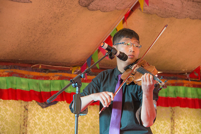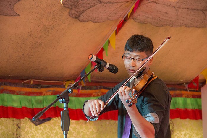 看藏裝典雅,賞舞姿婀娜。在三位主持人熱情洋溢的主持下,一曲優(yōu)雅典美的藏舞《芒康弦子》正式拉開(kāi)了本次林卡文藝匯演的帷幕,也再度點(diǎn)燃了大家的林卡情懷!隨后,由醫(yī)院各科室員工帶來(lái)的諸如藏語(yǔ)歌曲演唱、小提琴演奏、架子鼓演奏、吉他演奏、古箏演奏、軍禮表演、現(xiàn)代舞蹈、獨(dú)舞、歌唱、小品、相聲、T臺(tái)秀、大合唱等一系列精彩紛呈的節(jié)目應(yīng)接不暇地呈現(xiàn)在大家眼前,讓現(xiàn)場(chǎng)觀眾為之歡呼雀躍,好不開(kāi)懷。同時(shí),在本次的林卡文藝匯演中,還有一個(gè)十分特殊的節(jié)目——一個(gè)名為塔巴次仁的藏族小男孩及其家屬為我們?nèi)w阜康工作人員寫(xiě)來(lái)一封感謝信,并在林卡演出現(xiàn)場(chǎng)為大家演唱了一首《感恩的心》。