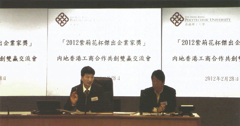 “2012年紫荊花杯杰出企業(yè)家獎”的頒獎典禮正在進(jìn)行,主禮嘉賓香港特別行政區(qū)立法會主席曾鈺成先生,特邀嘉賓中央港理工大學(xué)校長唐偉章先生共同啟動了2012紫荊花杯杰出企業(yè)家獎亮燈儀式。曾鈺成先生發(fā)表了熱情洋溢的講話,他對12位中國內(nèi)地的獲獎企業(yè)家表示祝賀,為此次海內(nèi)外民營企業(yè)家的盛會開啟序幕。