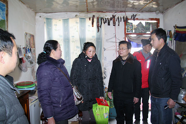 阜康婦產(chǎn)兒童醫(yī)院保潔組組長昂旺桑姆租住在區(qū)防疫站低矮的出租房里,房子面積小、背陰,即使在陽光燦爛的日子里也須一直生火取暖。她的丈夫患有嚴(yán)重的高原心臟病,已經(jīng)喪失了勞動能力,每日在家養(yǎng)病,所需醫(yī)療費用成為家中一個極大的支出項目,與此同時,她一個人的工資還要負(fù)擔(dān)兩個孩子的學(xué)費、生活費,為此一家人只能租住在租金便宜、條件惡劣的出租房里?;顒赢?dāng)天,當(dāng)院領(lǐng)導(dǎo)來到她家時,因為房子面積太小,一進(jìn)入室內(nèi)就已經(jīng)無法轉(zhuǎn)身,顯得特別的擁擠,說起家里的困難時,昂旺桑姆語帶哽咽,淚盈于睫。