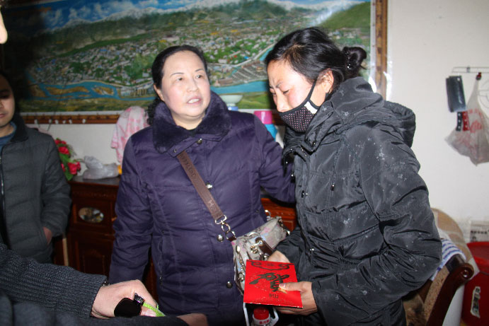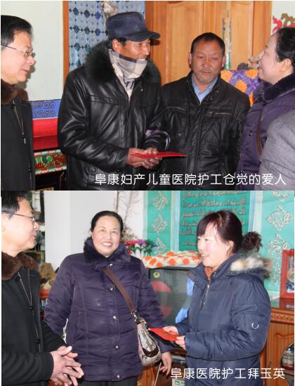 阜康集團在2013年春節(jié)、藏歷年來臨之際,在阜康醫(yī)院、阜康婦產(chǎn)兒童醫(yī)院、阜康(國際)健康體檢中心三家醫(yī)院開展了“進(jìn)職工門、知職工情、暖職工心”送溫暖活動。1月22日,公司下發(fā)了《關(guān)于開展2013年“雙節(jié)”送溫暖及特困職工幫扶活動的通知》;2月1日,三個醫(yī)院的院領(lǐng)導(dǎo)對提交申請的員工進(jìn)行了資格審查,并最終確定了9名符合條件的員工為此次送溫暖活動對象;2月3日,由阜康醫(yī)院李鋼副院長、劉連福副院長、阜康婦產(chǎn)兒童醫(yī)院呂果梅副院長、阜康(國際)健康體檢中心席大力副院長帶隊,逐一將慰問金、大米食用油等慰問品送到了困難員工的家中。阜康婦產(chǎn)兒童醫(yī)院保潔員窮達(dá)的父母在她年幼時已經(jīng)過世,由于沒有文化,她只能選擇當(dāng)清潔工養(yǎng)家糊口,每月不到兩千塊錢的工資要供養(yǎng)弟弟妹妹上學(xué),要給弟妹生活費、購買學(xué)習(xí)資料的費用,偶爾還要給弟妹買身新衣服,帶他們吃一頓好吃的,買一些營養(yǎng)品。為了省下在外租房的錢,她選擇了入住醫(yī)院的員工宿舍,每天吃、住、上班都在醫(yī)院,她現(xiàn)在最大的心愿就是好好供養(yǎng)自己的弟弟妹妹上學(xué),讓他們考上大學(xué)有一個美好的前程,不用像自己一樣干最累的活掙最少的錢。窮達(dá)是一個愛笑的女孩子,即使說起這些困難時也總是堅信只要弟弟妹妹有出息了,以后的日子就會好起來,她的樂觀向上時刻感染著身邊的每一個人,然而當(dāng)院領(lǐng)導(dǎo)將慰問金慰問品送到她手中時,這個堅強的女孩卻第一次在人前落了淚。阜康婦產(chǎn)兒童醫(yī)院保潔員曲宗租住在奪底路某個環(huán)境極差的小院子里20平方不到的出租房里,這樣的一間小房子是臥室是客廳也是廚房,然而生活的艱辛卻比不上她不幸的遭遇,她的丈夫沒有工作,一家人的生活全靠她微薄的工資,如果僅僅是如此還算差強人意,她那個不務(wù)正業(yè)的丈夫卻還經(jīng)常向她伸手要錢到外面去賭博、喝酒,一旦拒絕便是拳腳相向,且多次將她打得無法上班,甚至將她悄悄存起來的錢偷拿去喝酒賭博,每每說起這些事情,曲宗便是淚流滿面,無法自持,讓聞?wù)邿o不為之心酸。