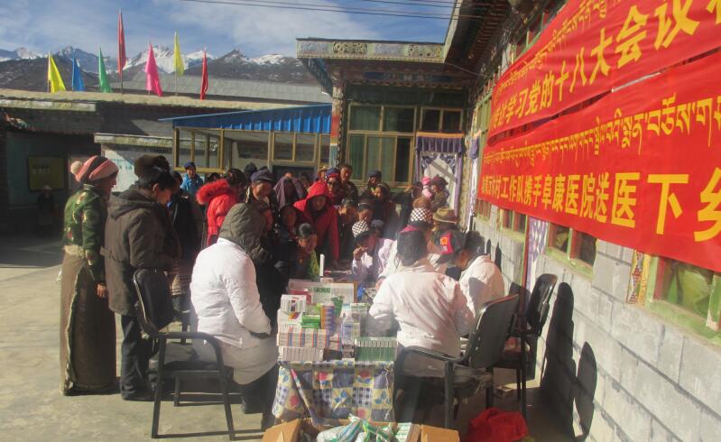 木村地處偏遠(yuǎn),路況差,冬天灰土揚(yáng)塵,夏天泥石流頻發(fā),村中物資短缺,蔬菜水果都是長(zhǎng)途運(yùn)輸過(guò)來(lái) 屬于奢侈品,駐村干部一呆就要半年,與世隔絕,其中的艱苦不是我們可以想象的。此次送醫(yī)送藥下鄉(xiāng),不只是為當(dāng)?shù)匕傩账腿チ烁房档臏嘏嗟氖亲屛覀冞@些城市醫(yī)生了解了村民生活的艱辛,了解了西藏駐村干部的不易,更堅(jiān)定了我們?yōu)槿嗣穹?wù)的信念。