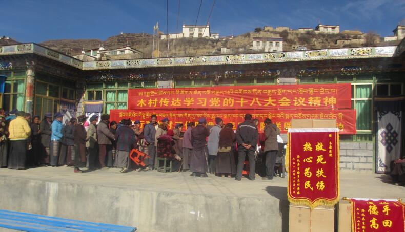 當(dāng)?shù)氐鸟v村干部,生格鄉(xiāng)政府、生格鄉(xiāng)衛(wèi)生院的領(lǐng)導(dǎo)接待了我們,得知我們趕路沒(méi)來(lái)得及吃早餐,特意煮了粥,炒了雞蛋和僅有的幾顆青菜。在他們的組織下,木村的百姓在村委會(huì)的院子里排起了長(zhǎng)長(zhǎng)的候診隊(duì)伍。院子里擺好了桌子、凳子,算是簡(jiǎn)易的診斷臺(tái),我負(fù)責(zé)測(cè)血壓、了解病情,護(hù)士小楊負(fù)責(zé)發(fā)藥,心電圖和B超由小張負(fù)責(zé)做,當(dāng)?shù)匦l(wèi)生院的吳金院長(zhǎng),以及醫(yī)生達(dá)次給我們當(dāng)翻譯。