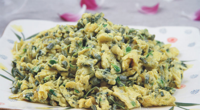 每年春季谷雨前后,香椿樹的嫩芽冒出苔了。幾乎每家每戶都計劃著要吃一頓香椿炒雞蛋。會爬樹的,直接爬上枝頭去摘取最嫩的那一簇;菜市上也偶爾會有人提著籃子叫賣,小小的一束,整整齊齊地擺成一排,邊緣緋紅的葉子隱隱散發(fā)著香氣。香椿炒蛋,曾經(jīng)是最好的下酒菜,用水焯過的椿芽切得細細的,拌著蛋漿,在油鍋里炒熟,什么調(diào)料都不用,只下點鹽,那股獨特的味道就足以讓人齒頰留香。