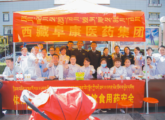 2016年10月14日上午,西藏阜康醫(yī)藥發(fā)展有限公司組織16名醫(yī)護(hù)人員于拉薩市宇拓路迎賓館旁建立免費(fèi)義診宣傳點(diǎn),積極參加由拉薩市食品藥品監(jiān)督局牽頭組織的“全國(guó)安全用藥月”主題宣傳活動(dòng),宣傳藥物濫用的危害、普及安全用藥知識(shí)、引導(dǎo)廣大社會(huì)群眾樹(shù)立安全合理用藥的意識(shí),同時(shí)免費(fèi)為過(guò)往的群眾測(cè)血壓、血糖,免費(fèi)看病及發(fā)放維生素、鈣片、風(fēng)濕及心腦類(lèi)等價(jià)值一萬(wàn)兩千余元藥品。